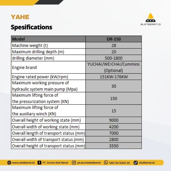 Distributor alat berat YAHE DR-150 di Indonesia