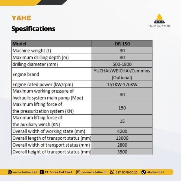 Max Drilling Depth: 30m | Drilling Diameter: 500-1800 mm | Machine Weight: 30T |